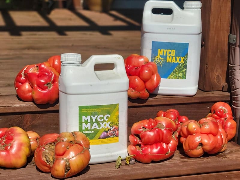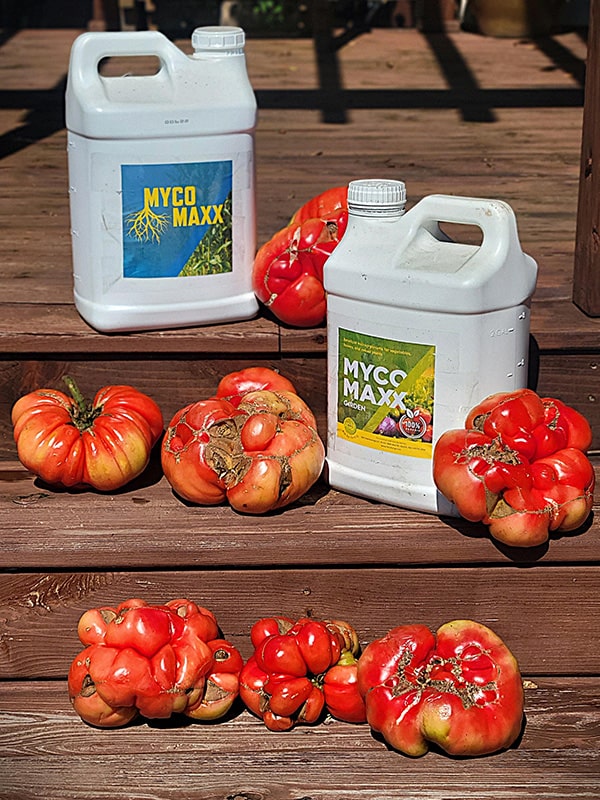 "What an amazing year using your products on my giant tomato plants. I used MycoMaxx Garden on all seeds prior to planting this spring. I also treated each root ball at the time of planting. This was by far my best season, and I could not believe the size of the plants or the fruit!! Although, I heavily trim the plants and only allow one fruit to grow, I could barely keep up with the trimming because the plants grew so vigorously! Every day I would have to pull new growth and flowers. This is the fastest I have ever seen healthy plants grow in all my years of growing these giant tomatoes. I honestly couldn't begin to imagine how big the plants would have gotten, and how much fruit they would have produced had I let them go on their own!